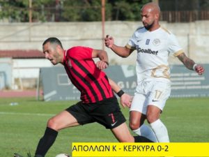 Την εντός έδρας ήττα με 2-0 από την Κέρκυρα γνώρισε ο Απόλλων Πόντου. Οι Φαίακες σκόραραν με το σουτ του Σιατραβάνη στο 56’ και την κεφαλιά του Τουράμ στο 67’.