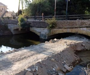 Ενα γεφύρι Ιστορικό στην Κέρκυρα έτοιμο να γκρεμιστεί…Και ενα έργο που δεν τελειώνει ποτέ…Ο εργολάβος εχει αφήσει ολα αυτά τα χώματα μπροστά απο το γεφύρι .