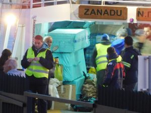 Εδω βλέπεται το σημερινό φορτίο .Αριστερα οικοδομικά υλικά και πίσω μια μπαλέτα και ένα μηχανάκι δίπλα στη δέστρα ΕΦΑΓΑΝ το αριστερό διάδρομο επιβατών!!! Δεξια ενα θαλασσί μακρύ βανάκι ΕΦΑΓΕ τον δεξιο διάδρομο επιβατών!!!!