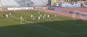 Η Κερκυρα με ενα ξαφνικό κεραυνό του Κρητικού ισοφάρισε στο 46 αλλα δεν κατάφερε να πάρει τους τρεις βαθμούς και να πλησιάσει τον πρωτοπόρο Βόλο.Στη Φωτογραφία το γκόλ του Κρητικού.