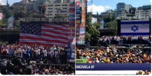 Η “αντιπολίτευση” στη Βενεζουέλα που πρόσκειται στον αυτοαποκαλούμενο πρόεδρο της χώρας Juan Guaido ύψωσε τεράστιες σημαίες των ΗΠΑ-Ισραήλ στη συγκέντρωσή της. Αυτοί είναι οι πατριώτες που θα λειτουργήσουν για τα εθνικά συμφέροντα; Είναι οι ίδιες σημαίες που σήκωσαν οι Κούρδοι της Συρίας προκειμένου ν’ απαλλοτριώσουν για λογαριασμό των ΗΠΑ το 90% του συριακού πετρελαίου που βρίσκεται στα κοιτάσματα πάνω από τον Ευφράτη.. Σε πολύ μικρότερη κλίμακα οι υποστηρικτές του Guaido είχαν αναρτήσει σημαίες των χωρών που τον αναγνωρίζουν ή που είναι φίλα προσκείμενες μεταξύ αυτών φιγουράρει και η ελληνική αφού η Ελλάδα δεν διαφοροποιήθηκε όπως η Ιταλία από τη κοινή γραμμή υποστήριξής του μέσω ΕΕ.