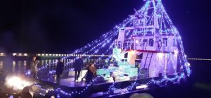 Η Δέσποινα Βανδή κατέφθασε στο σημείο όπου είχε στηθεί η σκηνή για την γιορτή μέσα σε ένα φωτισμένο με λαμπιόνια πλοίο και ξεκίνησε φυσικά να τραγουδά το αγαπημένο της τραγούδι, «Χριστούγεννα».