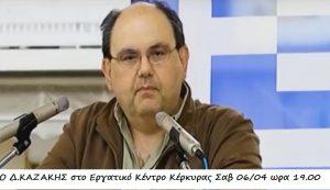 Ο Δ. Καζάκης του ΕΠΑΜ το Σάββατο στη Κέρκυρα..Ομιλία στο Εργατικό Κεντρο στις19.00
