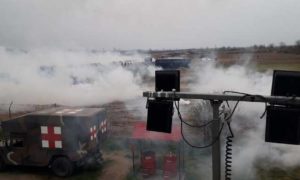 Τουρκικά μέσα ενημέρωσης προβάλουν βίντεο με απολύμανση του καταυλισμού που έχει στηθεί από την τουρκική πλευρά των συνόρων.