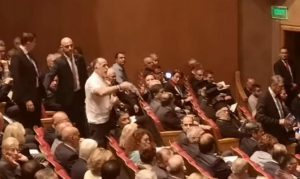 Αμέσως άνδρες της Ασφαλείας τον απομάκρυναν και η εκδήλωση συνεχίστηκε κανονικά. Πριν τον βγάλουν έξω, ακούγεται η χαρακτηριστική προτροπή ενός ατόμου προς τους άνδρες ασφαλείας να βγάλουν έξω τον «ταραξία», φωνάζοντας «πάρτε τον, πάρτε τον».