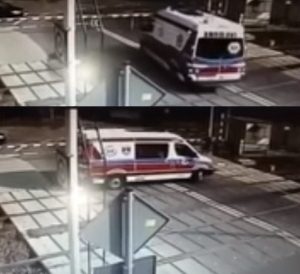 Οι εικόνες, όπως καταγράφηκαν από την κάμερα ασφαλείας, προκαλούν σοκ, αλλά και πολλά ερωτηματικά. Το ασθενοφόρο εμφανίζεται στις ράγες, παρ’ ότι η μπάρα έχει ήδη κατέβει. Στη συνέχεια, ο οδηγός του ασθενοφόρου κάνει μανούβρες, δείχνοντας να τελεί υπό καθεστώς πανικού, λίγο πριν τη σύγκρουση.