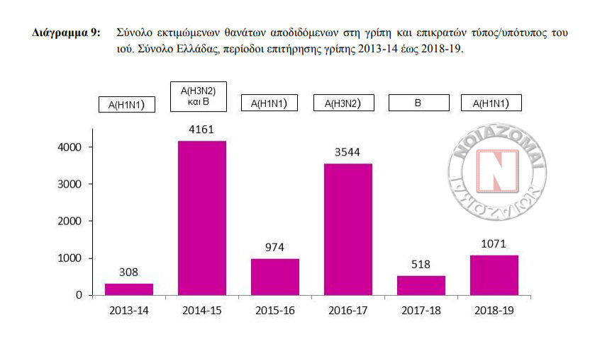 Ακόμη και την περασμένη χρονιά, το 2018-19, είχαμε 1.071 νεκρούς από Γρίπη στην Ελλάδα! Χωρίς να ακουστεί ούτε “κιχ”! Χωρίς να κλείσει ούτε …περίπτερο! Ούτε σχολικό τμήμα! Ούτε παρεκκλήσι! Ούτε ενοικιαζόμενο δωμάτιο! Χωρίς να καταστραφεί οικονομικά η Ελλάδα!