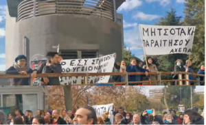 Περίπου 200 ανεμβολίαστοι Υγειονομικοί «υποδέχθηκαν» τον υπουργό Υγείας στην κεντρική πύλη του ΑΧΕΠΑ με πανό και φωνάζοντας συνθήματα κατά της κυβέρνησης.
