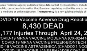 Η έκθεσή τους μέχρι τις 24 Απριλίου 2021 απαριθμεί 8.430 θανάτους και 354.177 τραυματισμούς-παρενέργειες μετά από τη λήψη τεσσάρων πειραματικών εμβολίων COVID-19:
