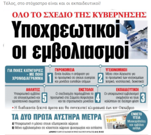 Μάλιστα έχοντας ως «δεδικασμένο» την απόφαση περί υποχρεωτικότητας εμβολιασμού στην ΕΜΑΚ, η κυβέρνηση, δια του στόματος του Υπ. Επικρατείας, παραδέχθηκε ότι στο πλάνο βρίσκεται η επιβολή εμβολιασμών και σε άλλους «κρίσιμους κλάδους».