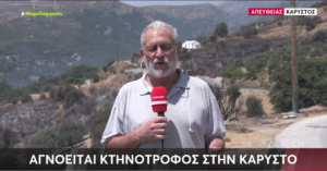Και δεύτερη τραγωδία μέσα σε λίγες ώρες για την περιοχή της Καρύστου, καθώς μετά και την επιβεβαίωση του θανάτου για τους 2 πιλότους του Canadair εντοπίστηκε νεκρός απανθρακωμένος μέσα σε καλύβι βρέθηκε ο 41χρονος κτηνοτρόφος που αγνοούνταν.