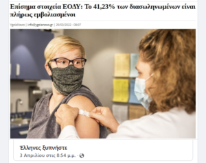 Οταν βγαίνουν επίσημα και σου λένε οτι το 40% των εμβολιασμένων (ΤΡΙΠΛΟΕΜΒΟΛΙΑΣΜΕΝΟΙ) ειναι οι διασωληνωμένοι τότε καταλαβαίνεις τη ζημιά εχει κάνει το λεγόμενο “εμβόλιο” !!!