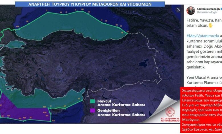 Read More »Με μία ανάρτηση του ο υπουργός Μεταφορών της Τουρκίας, ανακοινώνει ότι η χώρα του…επέκτεινε τον χώρο ευθύνης για έρευνα και…