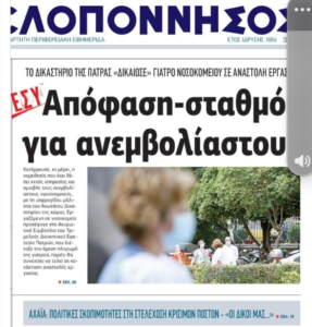 Το θεμα δημοσίευσε η Εφημερίδα ΠΕΛΟΠΟΝΝΗΣΟΣ και το εντοπίσαμε στο Τουίτερ σε ανάρτηση..