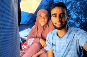 Η μόνη μου αδερφή και εγώ που έχουμε απομείνει ζούμε σε μια μικρή σκηνή, αφού χάσαμε το σπίτι μας και όλα τα μέλη της οικογένειάς μας, συμπεριλαμβανομένης της μητέρας μου, του μεγαλύτερου αδερφού μου, του μικρότερου αδερφού μου, της αδερφής μου και των παιδιών της, του συζύγου της και της θείας μου και της οικογένειάς της, σε έναν βομβαρδισμό που στόχευε το σπίτι μας.
