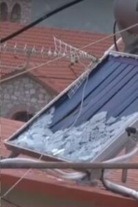 ΧΑΛΑΖΙ μεγέθους σκόρδου και έσπασε παμπρίζ αυτοκινήτων Ηλιακοί Θερμοσίφωνες και οτι πλαστικό τραπέζι υπήρχε εξω. Κατα τα αλλα ο ΕΛΓΑ πληρώνει ψεκασμό κατι εκατομμύρια να μην πέφτει τέτοιο χαλάζι. πέτρα!!!