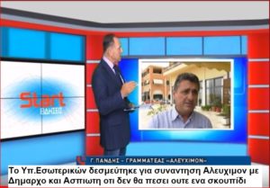 Ακουστε τις χθεσινές δηλώσεις του Γραμματέα του Αλευχιμον στο Τοπικό τηλεοπτικό σταθμό start.