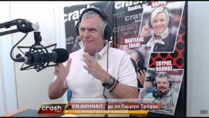 Στο ραδιόφωνο διατηρεί εκπομπή στον αυτοδιαχειριζόμενο Ελλάδα 94.3 ενώ παράλληλα έστησε, μαζί με το περιοδικό Crash που εκδίδει, τον ιντερνετικό σταθμό Crash Radio. Παλαιότερα είχε εκπομπή στα Παραπολιτικά 90.1 FM και για μία επταετία, στον Real FM 97.8.