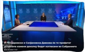Σε προεκλογική συζήτηση στην τηλεόραση Telma, η υποψήφια για την προεδρία της χώρας, Γκορντάνα Σιλιάνοφσκα από το VMRO-DPMNE με τον υποψήφιο για δεύτερη προεδρική θητεία, που προτείνει το SDSM τον Στέβο Πενταρόφσκι, άνοιξε τα χαρτιά της σε σχέση με τους γείτονές της.