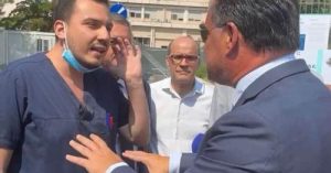 Ο διάλογος των δύο ανδρών αποτυπώθηκε στο βίντεο που ανάρτησε στα μέσα κοινωνικής δικτύωσης ο Άδωνις Γεωργιάδης που βρίσκεται από ασφυκτική πίεση καθώς οι αρρυθμίες στο ΕΣΥ πολλαπλασιάζονται.