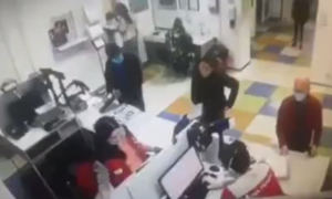 Το περιστατικό το κατέγραψε η κάμερα ασφαλείας και συνέβη σε ένα ταχυδρομείο στο Κίεβο της Ουκρανίας, την Κυριακή (24 Μαΐου).