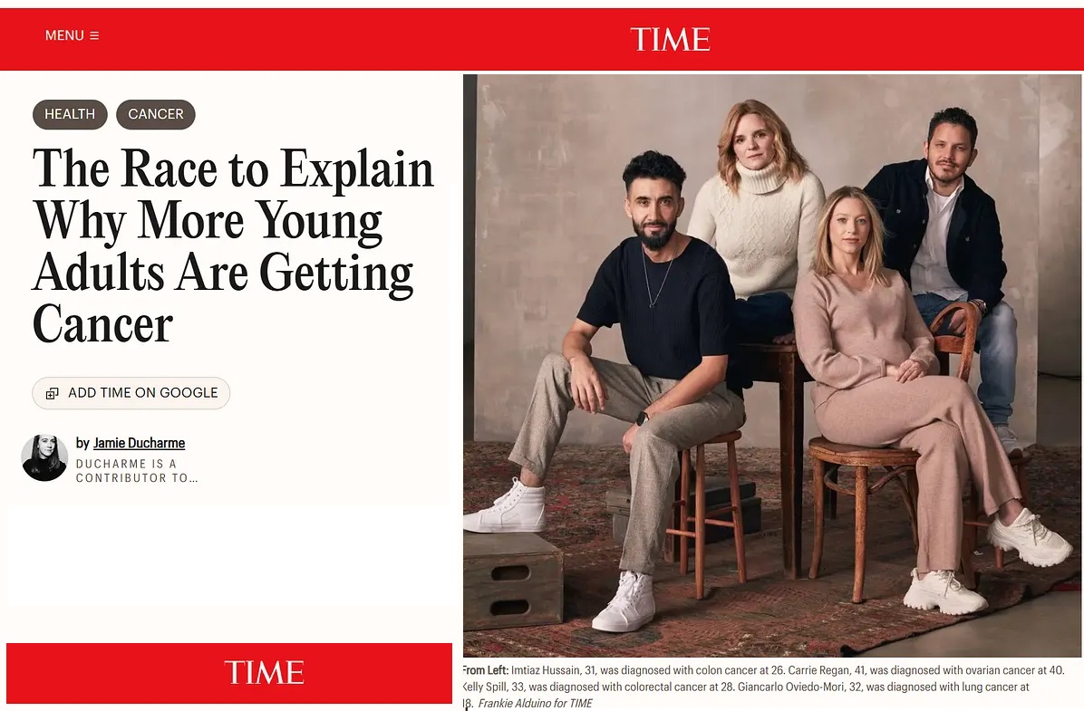 Το TIME παρουσιάζει την κατάσταση ως ένα επιδημιολογικό αίνιγμα: καρκίνοι του παχέος εντέρου, του παγκρέατος, του μαστού, του θυρεοειδούς και του πνεύμονα αυξάνονται ταχύτερα στους νέους ενήλικες παγκοσμίως. Κέντρα καρκίνου που κάποτε εξυπηρετούσαν κυρίως συνταξιούχους έχουν πλέον γεμίσει με millennials. Το άρθρο σημειώνει ότι αυτοί οι όγκοι συχνά μοιάζουν με εκείνους που παρατηρούνται στους ηλικιωμένους—επιθετικοί, διηθητικοί, με ώριμες μεταλλάξεις—παρά το γεγονός ότι εμφανίζονται δεκαετίες νωρίτερα. Το παρουσιάζει ως κάτι ακατανόητο, όμως τέτοια φαινόμενα απαιτούν μια ανοσολογική εξήγηση.