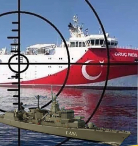 «Νωρίς χθες το απόγευμα (20.10.20) τουλάχιστον οχτώ μονάδες επιφανείας του Ελληνικού Στόλου έιχαν παραταχθεί σε… θέσεις μάχης στο όριο των έξι ναυτικών μιλίων, με στόχο να αποτρέψουν το Oruc Reis και τον τουρκικό στολίσκο που το συνοδεύει να περάσουν το όριο των έξι μιλίων».