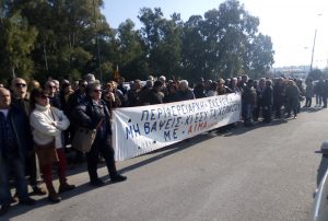 Οι κάτοικοι έφθασαν κομβόι και παρκάρισαν στον εσωτερικό δρόμο της Εθνικής Παλαιοκαστρίτσης και πέρασαν απέναντι κάτω από το γραφείο του φωνάζοντας συνθήματα και το ΕΒΓΑ ΕΞΩ Πόντικα!!!!