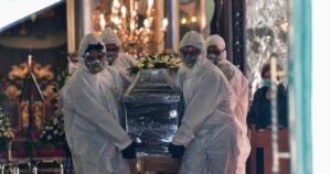 Ο δεύτερος λόγος είναι πως ακόμη και τα φέρετρά τους ήταν τυλιγμένα με πλαστικό σάκο. Στη συγκεκριμένη ενέργεια προχωρούσαν τα περισσότερα γραφείων κηδειών, κάτι που προφανώς το έκαναν για μεγαλύτερη ασφάλεια των συγγενών και φίλων, με στόχο τη μη εξάπλωση του ιού. Πόσο μάλλον στα πρώτα χρόνια που καταγραφόταν και μεγάλη άγνοια στον τρόπο διαχείρισης όλης της κατάστασης.
