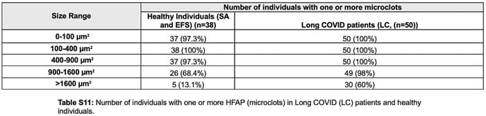 Και σύμφωνα με τον Πίνακα S11, κάθε μεμονωμένος εμβολιασμένος συμμετέχων είχε αμυλοειδείς μικροθρόμβους σε διάφορα μεγέθη: