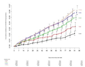 Τα αποτελέσματα της μελέτης τους, που φαίνονται γραφικά παραπάνω, καταδεικνύουν ότι όσες περισσότερες δόσεις του αρχικού εμβολίου κάνατε, τόσο πιο πιθανό ήταν να κολλήσετε τον κορωνοϊό. Με άλλα λόγια, το αρχικό εμβόλιο Covid δεν είναι απλώς αναποτελεσματικό κατά της Omicron. Είναι πραγματικά αντι-αποτελεσματικό.
