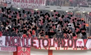 «Άδωνι ετοιμάσου» γράφει το πανό που ανάρτησαν οι οργανωμένοι οπαδοί του Ολυμπιακού.
