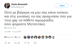 «Ούτε με βιάγκρα να μην σας κάνει κούκου και στις γυναίκες να σας αραχνιάσει όσο για τους gay να πάθετε αιμορροΐδες όσοι ψηφίσετε Μητσοτάκη»