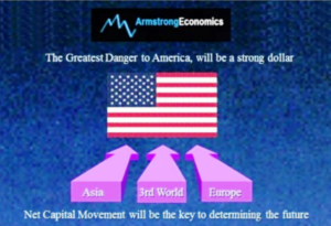Τα μοντέλα μας επιβεβαίωσαν μια εξαιρετικά ασυνήθιστη αλλαγή στην κατεύθυνση των παγκόσμιων ροών κεφαλαίων, η οποία εμφανίζεται ακόμη και στις αναδυόμενες αγορές. Η Κίνα είδε τους επενδυτές να αποχωρούν από τις αγορές μετοχών της λόγω ανησυχιών ότι οδηγούμαστε ξεκάθαρα στον Τρίτο Παγκόσμιο Πόλεμο. Ιστορικά, το κεφάλαιο ρέει στο δολάριο κατά τη διάρκεια του παγκόσμιου πολέμου με την υπόθεση ότι τανκς δεν θα προσγειωθούν στις παραλίες της Βιρτζίνια ή της Καλιφόρνια. Αυτό θα τείνει να στηρίξει το δολάριο, αλλά όχι μακροπρόθεσμα.