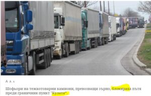 Σύμφωνα με αυτούς, υπάρχει προφορική εντολή για καθυστέρηση του φορτίου δημητριακών, τα οποία, εκτός από το τελωνείο και τη Συνοριακή Αστυνομία, ελέγχονται και από υπαλλήλους της Εθνικής Υπηρεσίας Εσόδων, αναφέρει το Βουλγαρικό Εθνικό Ραδιόφωνο- BNR.