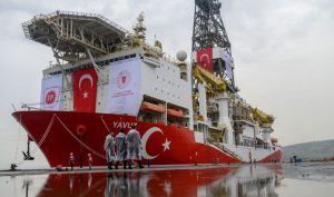 Turkish police officers patrols next to the drilling ship ‘Yavuz’ scheduled to search for oil and gas off Cyprus, at the port of Dilovasi, outside Istanbul, on June 20, 2019. – Turkey is set to send a new ship on June 20 to search for oil and gas off Cyprus, in a move expected to escalate tensions after the EU called on Ankara to stop its “illegal drilling activities”. The region near the divided island is believed have rich natural gas deposits, triggering a race between Turkey and the internationally recognised Cyprus, which also plans to ramp up its exploratory activities in the eastern Mediterranean. (Photo by BULENT KILIC / AFP) (Photo by BULENT KILIC/AFP via Getty Images)Η διάρκεια κάθε άδειας είναι 8 χρόνια και αφορούν 9 περιοχές, με τις συντεταγμένες να δείχνουν ότι και οι 9 είναι εντός των τουρκικών χωρικών υδάτων.