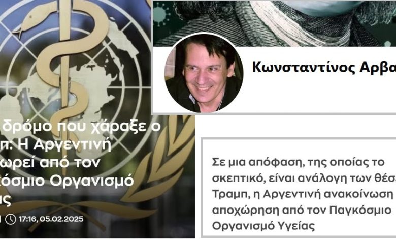 Read More »ΚΩΝ. ΑΡΒΑΝΙΤΗΣ: ΜΕΤΑ ΤΙΣ Η.Π.Α ΤΩΡΑ ΚΑΙ Η ΑΡΓΕΝΤΙΝΗ, ΑΠΟΧΩΡΕΙ ΑΠΟ ΤΟΝ Π.Ο.Υ. ΕΤΟΙΜΑΖΟΝΤΑΙ ΚΑΜΠΟΣΕΣ ΑΛΛΕΣ ΧΩΡΕΣ Η ανακοίνωση έγινε…
