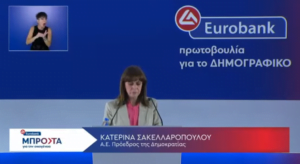 Μιλώντας σε εκδήλωση που διοργάνωσε η Eurobank για το δημογραφικό της Χώρας ανέφερε οτι επεξεργάζονται οι Εχθροί της Χώρας μας για την ΑΛΛΟΙΩΣΗ του πληθυσμού και προχώρησε σε ΠΡΟΚΛΗΤΙΚΗ Δηλωση ότι “είναι αναγκαίο να δούμε το θέμα της ενσωμάτωσης των μεταναστών, ιδιαίτερα αυτών που προσπαθούν να ενταχθούν στην ελληνική κοινωνία. Η ομαλή ένταξή τους δεν συμβάλλει μόνο στην οικονομική ανάπτυξη, αλλά βοηθά και στην τόσο αναγκαία ανανέωση του πληθυσμιακού δυναμικού της Χώρας μας”