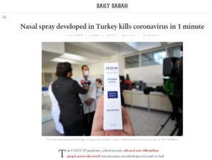 Ο Sabancı είπε ότι είχε πραγματοποιήσει έρευνες για την προστασία από ασθένειες πριν ξεκινήσει η πανδημία του κοροναϊού. “Με τον Cüneyt Özakın, δείξαμε ότι η λύση έχει αντιβακτηριακή δράση και μετά την έναρξη της πανδημίας, σκεφτήκαμε εάν θα μπορούσαμε να αναπτύξουμε αυτήν τη λύση για να συμβάλουμε στην καταπολέμηση του COVID-19. Έτσι, βελτιώσαμε ένα νέο στοματικό και ρινικό διάλυμα και το στειλαμε για δοκιμές βιοσυμβατότητας », είπε.
