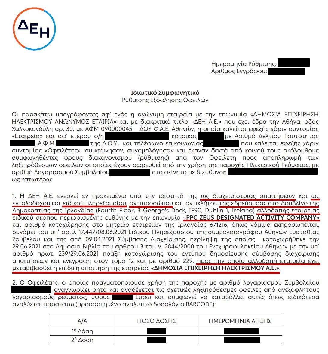 ❷ Ομολογεί ότι η ίδια η ΔΕΗ ΜΕΤΑΒΙΒΑΣΕ ΤΟ ΧΡΕΟΣ ΣΑΣ προς την ξένη εταιρία!!