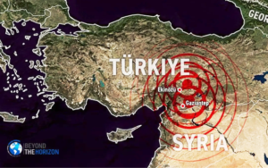 Νωρίς το πρωί της Δευτέρας γύρω στις 4 το πρωί της 6ης Φεβρουαρίου 2023, ένας τεράστιος σεισμός 7,8 Ρίχτερ ταρακούνησε τη νοτιοανατολική Τουρκία και τη Συρία. Σύμφωνα με το Γεωλογικό Ινστιτούτο των ΗΠΑ, το επίκεντρο του σεισμού έπληξε μια περιοχή περίπου 30 χλμ από την Gaziantep (2,1 εκατομμύρια πληθυσμό), μια μεγάλη πόλη και πρωτεύουσα της επαρχίας 100 χλμ. από τα σύνορα με τη Συρία. Το επίκεντρο του σεισμού ήταν περίπου σε 18 χλμ. βάθος.