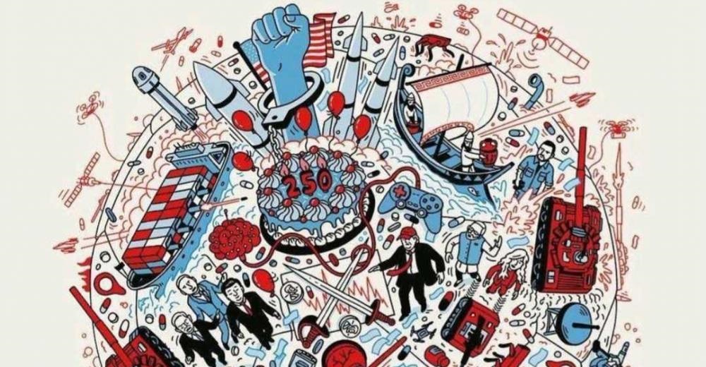 1) Η τούρτα με τον αριθμό “250” ο οποίος αντιπροσωπεύει την αναπόφευκτη 250ή επέτειο της της Διακήρυξης της Ανεξαρτησίας των Ηνωμένων Πολιτειών το 2026. Βρίσκεται στο κέντρο της εικόνας και αυτό δείχνει ότι θα βρίσκεται στο επίκεντρο της προσοχής ολόκληρου του κόσμου.