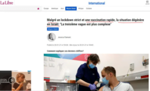 Παρά το αυστηρό lockdown κι έναν γρήγορο εμβολιασμό η κατάσταση επιδεινώνεται στο Ισραήλ: “Το τρίτο κύμα είναι πιο σύνθετο” αναφέρει σε άρθρο της η βέλγικη la libre… (Δηλ. το εμβόλιο μύθος καταρρίπτεται στην πράξη…Η πραγματικότητα είναι αδίρητη. Αντί να υπάρχει βελτίωση υπάρχει σαφής επιδείνωση με τους μαζικούς εμβολιασμούς..).