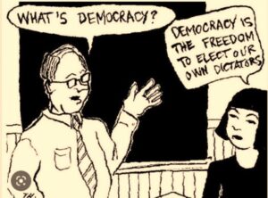 Κοντολογίς, η “δημοκρατία” που νομίζουμε ότι έχουμε είναι μια άριστα μελετημένη και καλοστημένη απάτη, ενώ το πραγματικό μας πολίτευμα είναι εντολοδόχος “Απολυταρχική Ολιγαρχία” με κοινοβουλευτική προβιά.