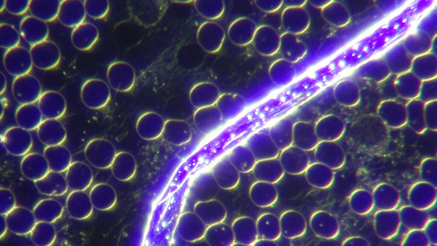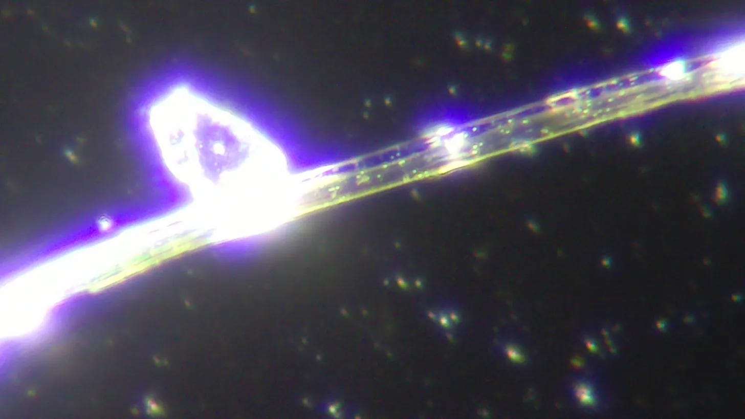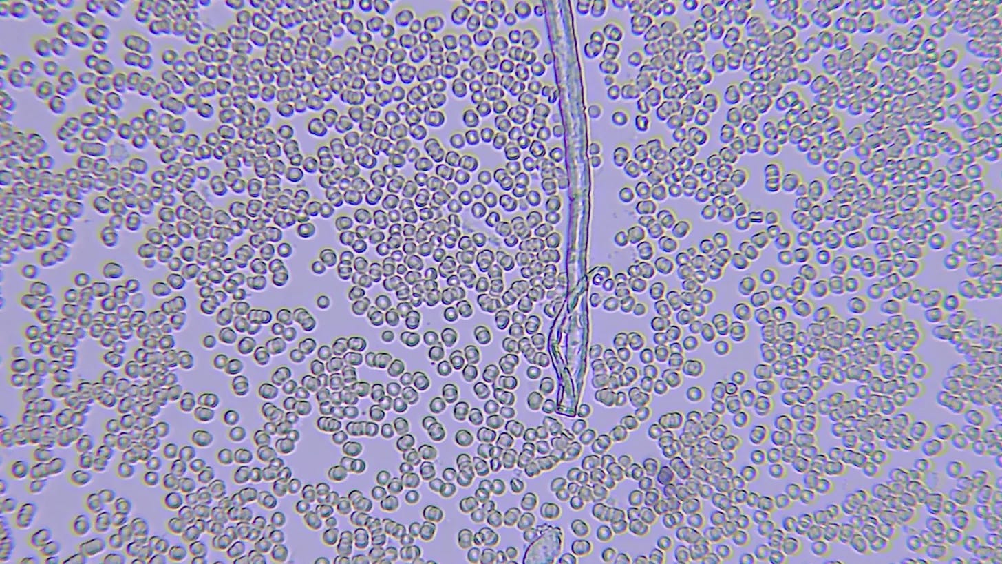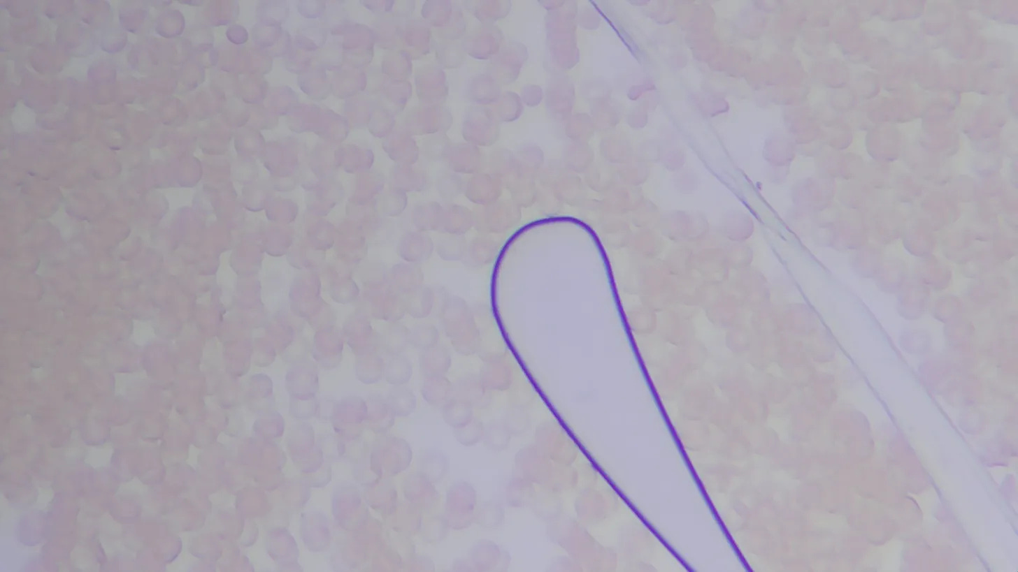 Έχω ξαναδεί αυτή τη χαρακτηριστική κάμψη προς τα πίσω στα άκρα δομών όπως αυτή, αλλά ποτέ δεν ήξερα τι να σκεφτώ. Δεν κατάφερα να βρω καμία εικόνα ανθρώπινων παρασίτων του αίματος που να έχουν αυτό το χαρακτηριστικό, οπότε υποθέτω ότι το αντικείμενο είναι, τουλάχιστον εν μέρει, συνθετικό.