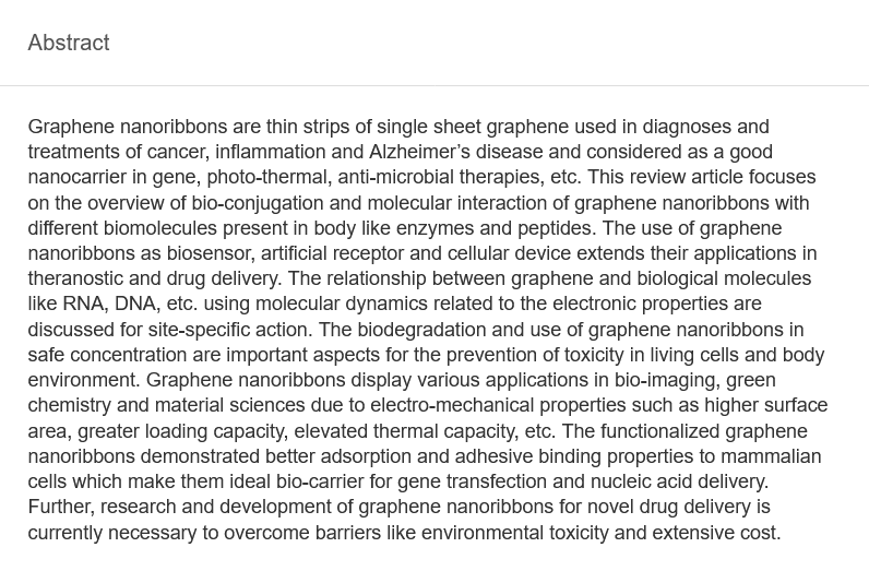 Οι νανοκορδέλες με βάση το γραφένιο χρησιμοποιούνται στην υγειονομική περίθαλψη για διάφορους σκοπούς, όπως για παράδειγμα: μεταφορά ιατρικών προϊόντων για διάφορους σκοπούς, όπως: γονιδιακή μεταφορά, θεραπεία της νόσου του Αλτσχάιμερ και του καρκίνου, και βιοανίχνευση (Shende και Pathan «Graphene nanoribbons: A state-of-the-art in health care» 2021 – Νανοταινίες γραφενίου: ‘‘Τελευταία λέξη’’ της τεχνολογίας, στην υγειονομική περίθαλψη. —Ιανουάριος 2021) :