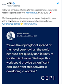 Σημείωση: Η ανάπτυξη εμβολίου nCoV του 2019 ανακοινώθηκε στο Νταβός 2 εβδομάδες μετά την ανακοίνωση της 7ης Ιανουαρίου 2020 και μόλις μια εβδομάδα πριν από την επίσημη έναρξη της παγκόσμιας κήρυξης έκτακτης ανάγκης για την δημόσια υγεία του ΠΟΥ την 30η Ιανουαρίου. Η Ανακοίνωση για τον εμβολιασμό των WEF-Gates-CEPI προηγήθηκε της κήρυξης έκτακτης ανάγκης για τη δημόσια υγεία της ΠΟΥ (PHEIC).