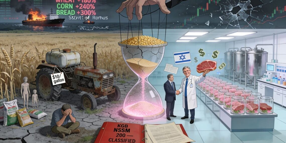 Δεν φαινόταν ούτε εφικτό ούτε λογικό να αρχίσει να επενδύει στο τεχνητό κρέας το 2024, και όχι στο πραγματικό κρέας, που έχει καλύτερη γεύση, είναι πιο υγιεινό και η παραγωγή του ήταν φθηνότερη. Αλλά ο Νετανιάχου, ο Μπιλ Γκέιτς και οι άλλοι τεχνοκράτες της παγκοσμιοποίησης πιθανότατα γνώριζαν, από εσωτερική πληροφόρηση, ότι ένα συγκλονιστικό γεγονός, όπως είναι ο Τρίτος Παγκόσμιος Πόλεμος, βρισκόταν στον ορίζοντα και μάλιστα ήταν επικείμενος και ότι η εκτίναξη των τιμών της ενέργειας θα σήμαινε ότι οι αγρότες δεν θα μπορούσαν πλέον να αντέξουν οικονομικά να εκτρέφουν αγελάδες, χοίρους, ψάρια κ.λπ. σε επαρκείς ποσότητες για να τροφοδοτήσουν και να θρέψουν με τρόφιμα τον κόσμο.
